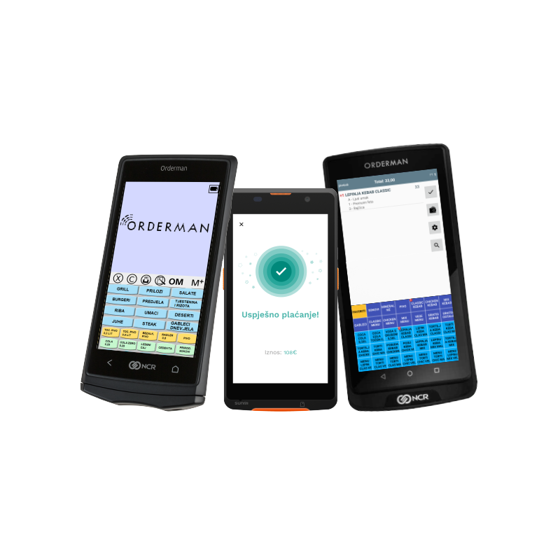The latest generation of professional hospitality handheld terminal, with a camera and card payment option.