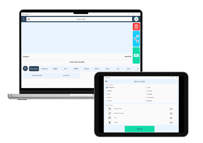 You can use Start in hair and beauty salons, in flower shops, for delivery and payment of rides or to pay for any service such as instructions, speech therapy treatment, various types of counseling, private training and the like. Due to its long-lasting battery and small size, Start is the ideal choice for anyone who performs their services in smaller spaces or at clients’ homes.